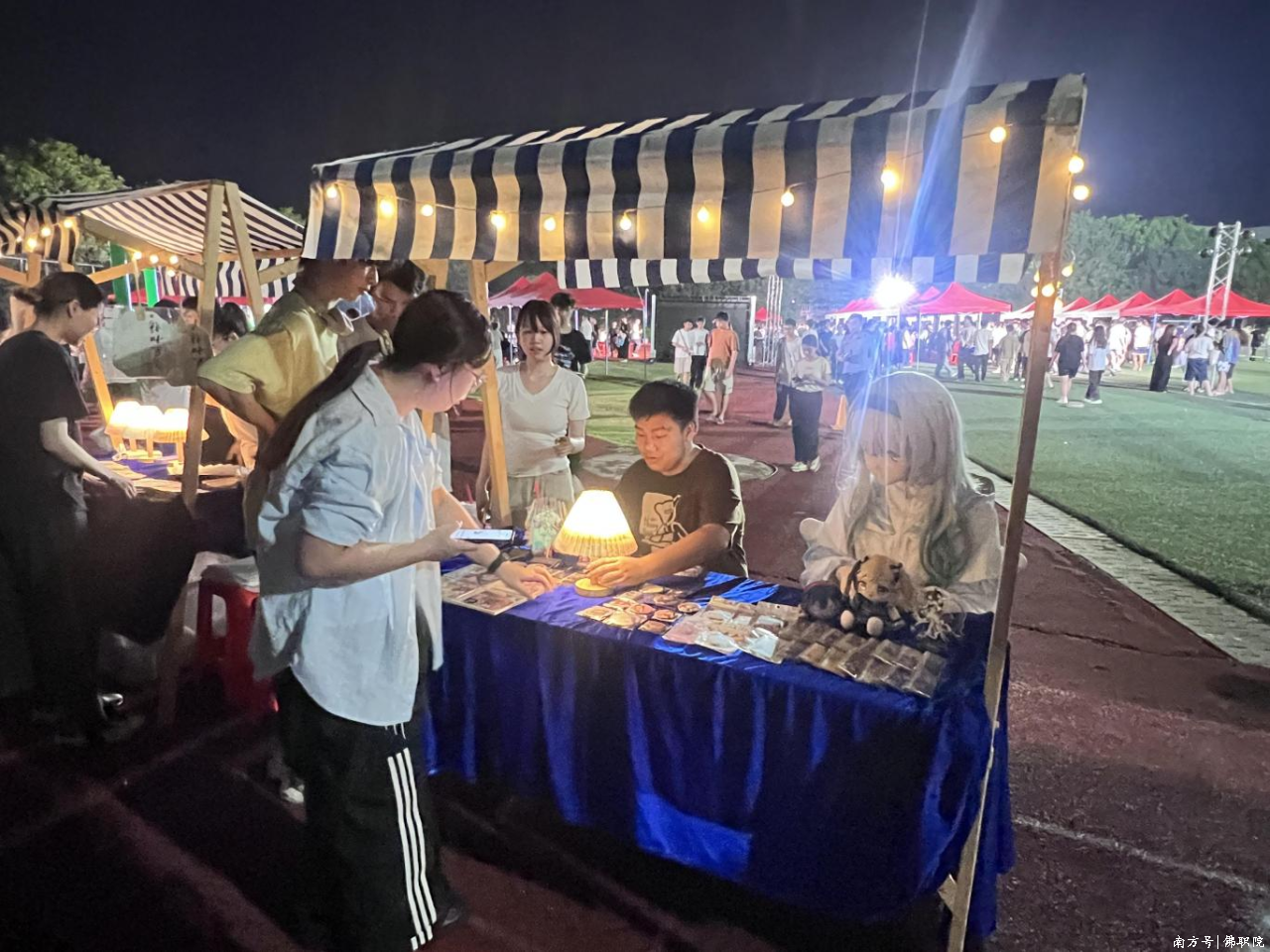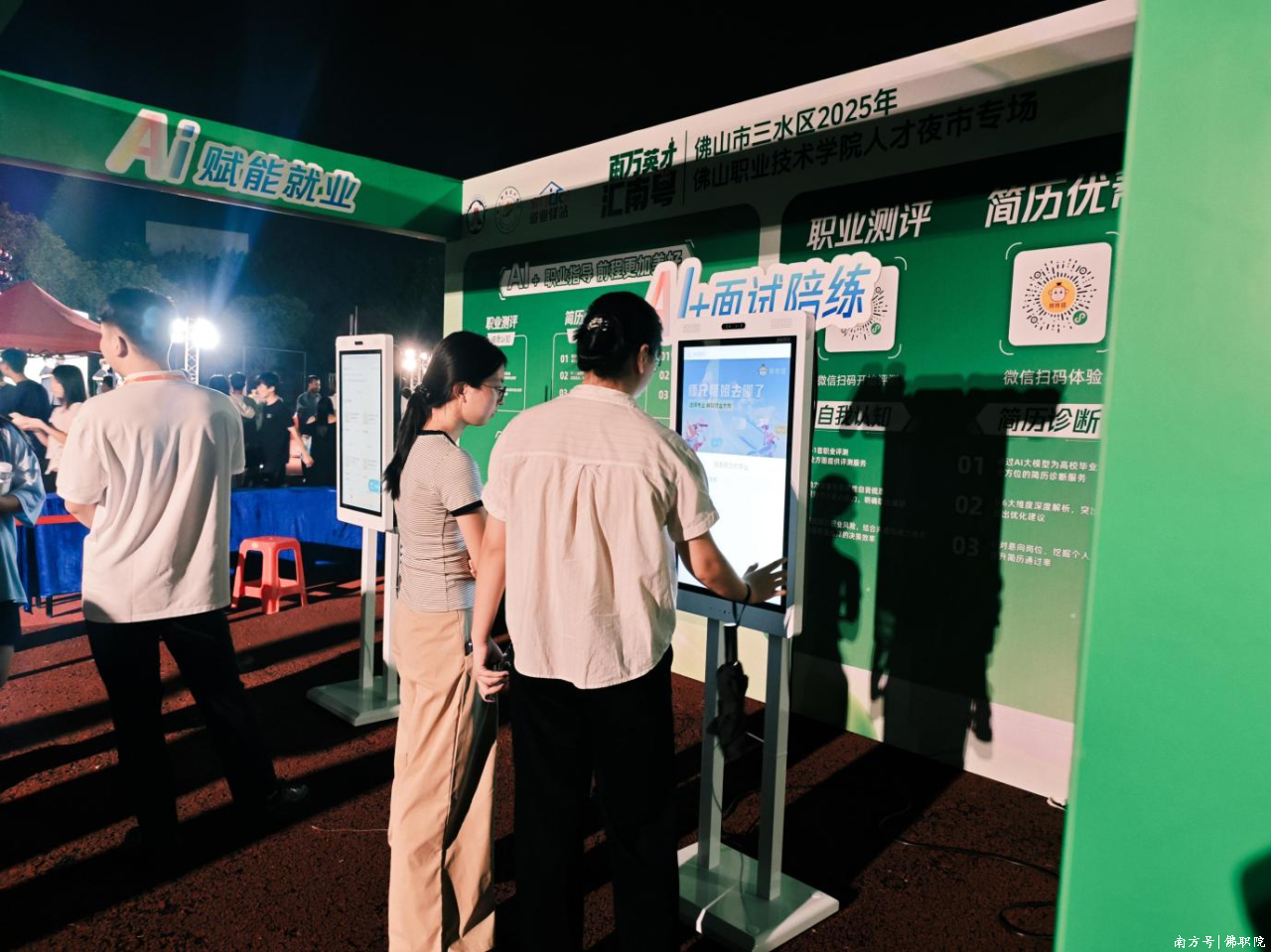 三水区人力资源和社会保障局党组书记、局长张伟杰介绍,该局全力支持学校就业创业工作,不仅在学校设立建设就业创业e站,更从去年起,主动联合学校创新打造“人才夜市”就业服务新场景,将严肃的招聘现场转化为充满活力的“交流市集”,将冰冷的简历投递变为融合服务的“沉浸式求职体验”。